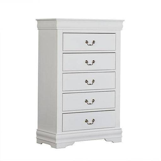 Furniture of AmericaTraditional White Solid Wood, Engineered Wood, Metal Bracketed Feet Cedarwood-Lined Bottom Drawers Lychee Patter on Drawer Front Metal Side Glide