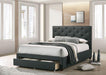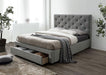 SYBELLA Cal.King Bed, Beige, 91"L X 74 5/8"W X 46 1/2"H, 182.6lbs. Comfort and functionality are the hallmarks of this fully upholstered, mattress-ready bed. On the comfort side, there's the rich linen-like fabric that wraps around the frame of the bed, culminating in a simple rectangular headboard with beautiful diamond tufting. Functionality-wise, the foot end of the bed is a smooth rolling drawer with casters; it's the perfect storage spot for any extra pillows or beddings within arm's reach.