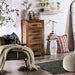 GALANTHUS Chest, 23 1/2"L X 17"W X 45 1/4"H, 93.44lbs. Variations in the wood grain color make this five-drawer chest a handsome addition to any rustic room decor. Made of solid wood mango, the piece is durable and resistance to water damage. The front panel is designed like a picture frame with each corner mitered and joined masterfully for a seamless look. The drawer handles are metal and finished in matte for that trendy barnyard look.